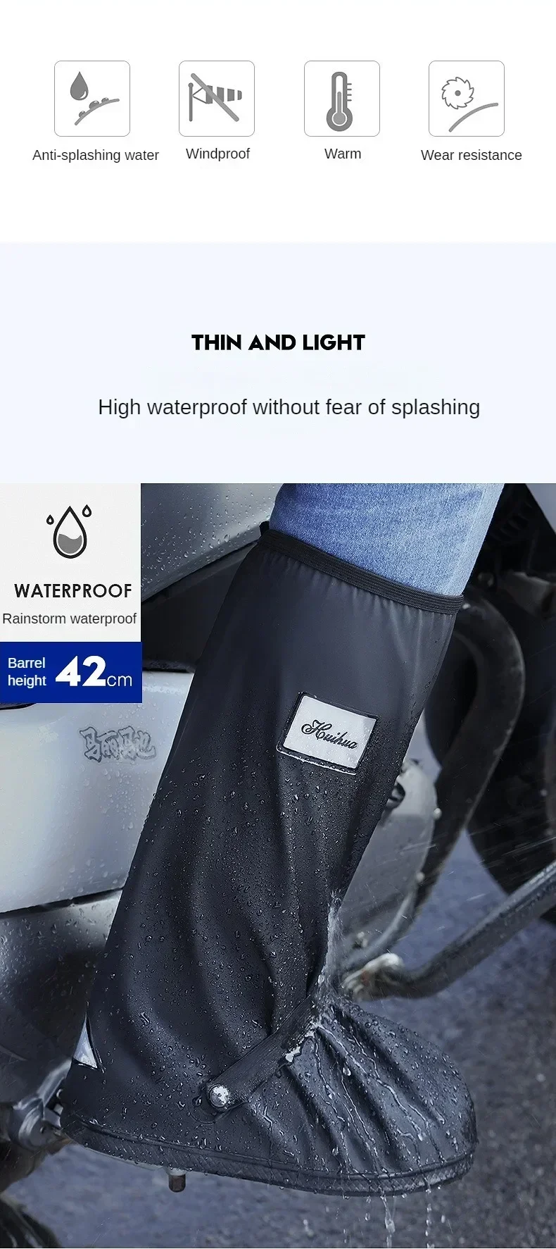 উচ্চ মানের পিভিসি উপাদান: জলরোধী এবং টেকসই, যা জুতাকে ভিজে যাওয়া থেকে রক্ষা করে।